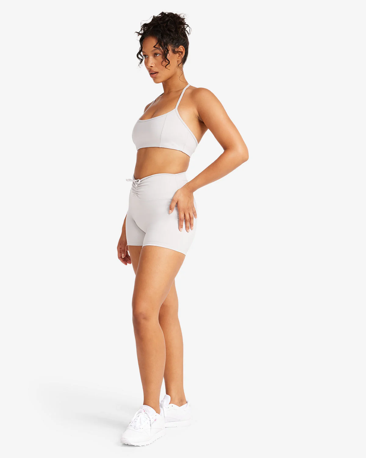 Serenity Drawstring Scrunch Shorts 4" | Light Grey